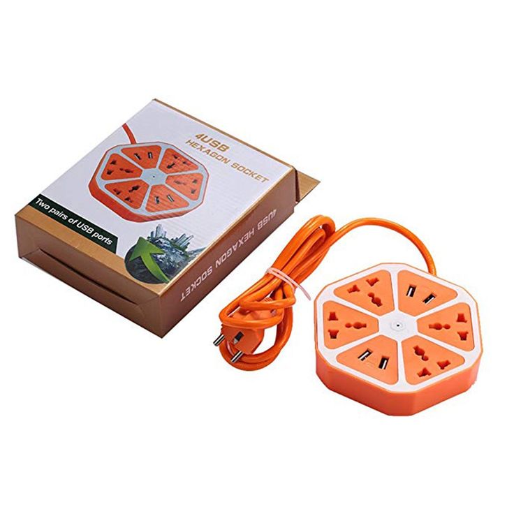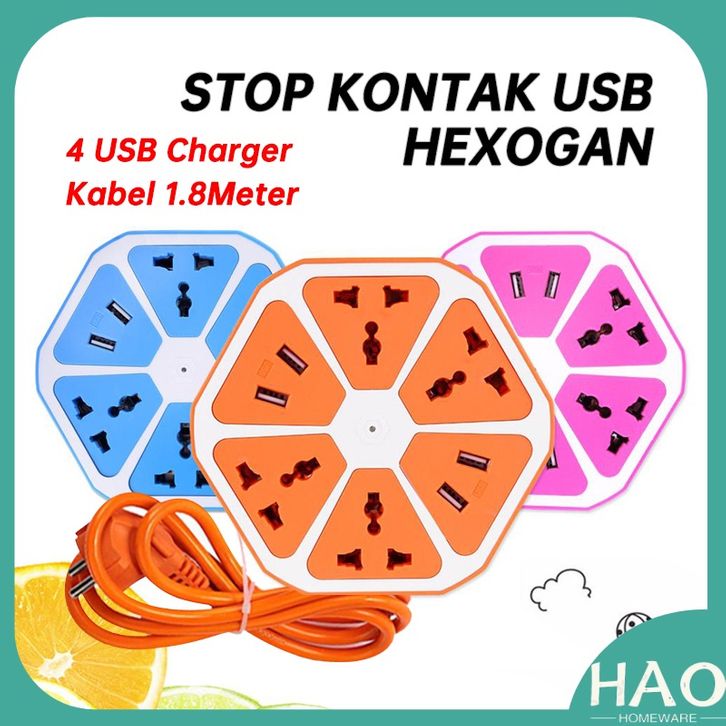 PROMO STOP KONTAK JERUK / STOP KONTAK USB HEXOGAN / COLOKAN SEGI ENAM 4LUBANG 1.8METER /SOKET 4 USB 2 USB / STEKER T ARD