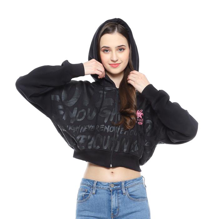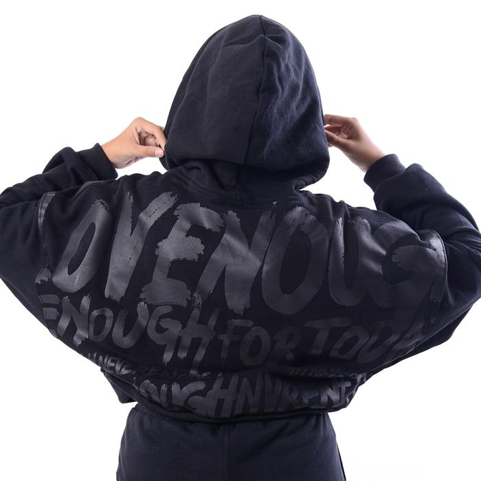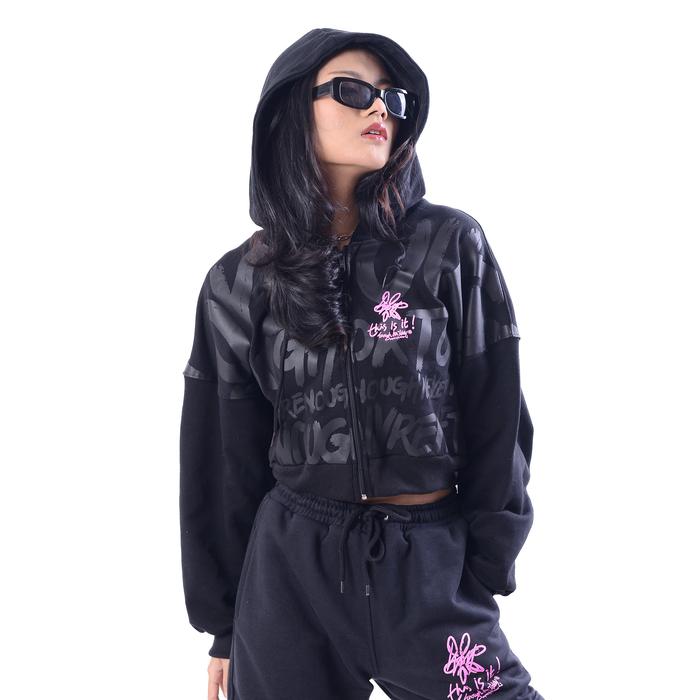 HOODIE SWEATER CROP OVERSIZE ZIPPER RESLETING KATUN CEWEK WANITA HITAM FULL PRINT THIS IS IT ENOUGH FOR TODAY KUIY FLEECE OUTER BASIC GORENGAN - HITAM