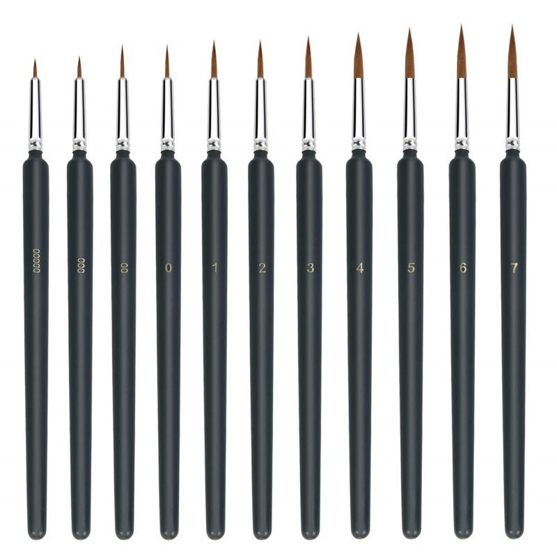 11pcs Paint Brush Set Kuas Lukis Liner Kuas Lukis Cat Air Set Tip Nylon Bulat Satuan