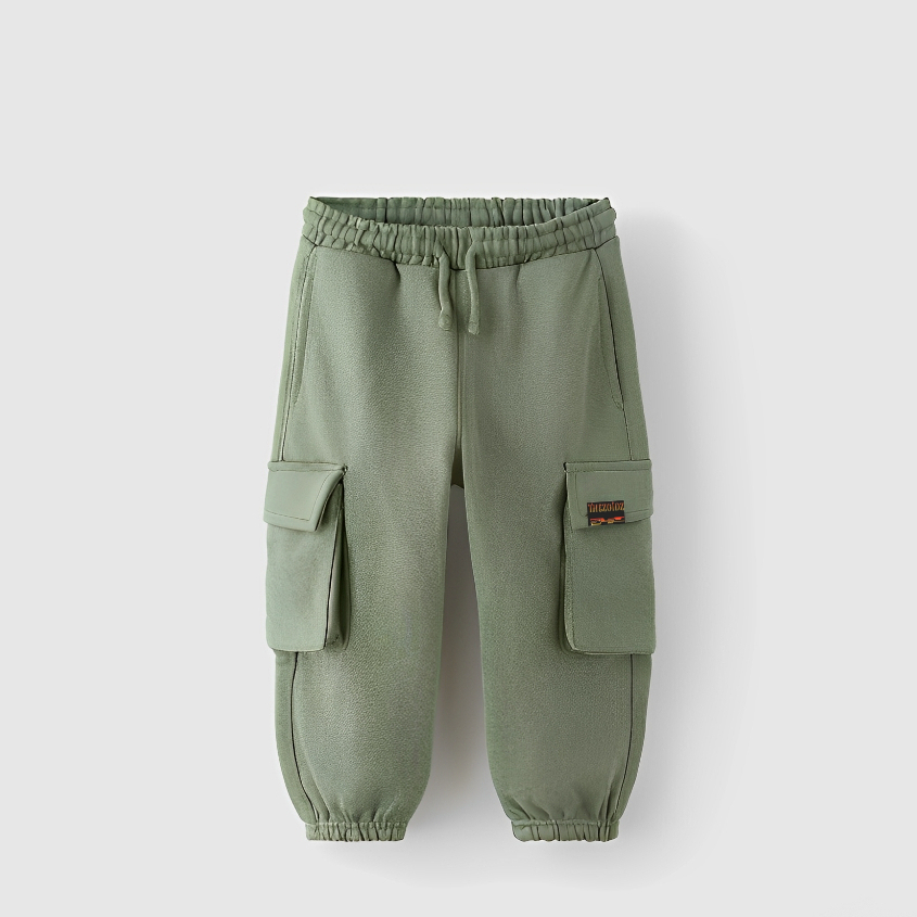 THEZOIDZ - Celana Jogger Cargo Anak Panjang Uniseks Usia 1-10 Tahun Matt Fleece Lembut