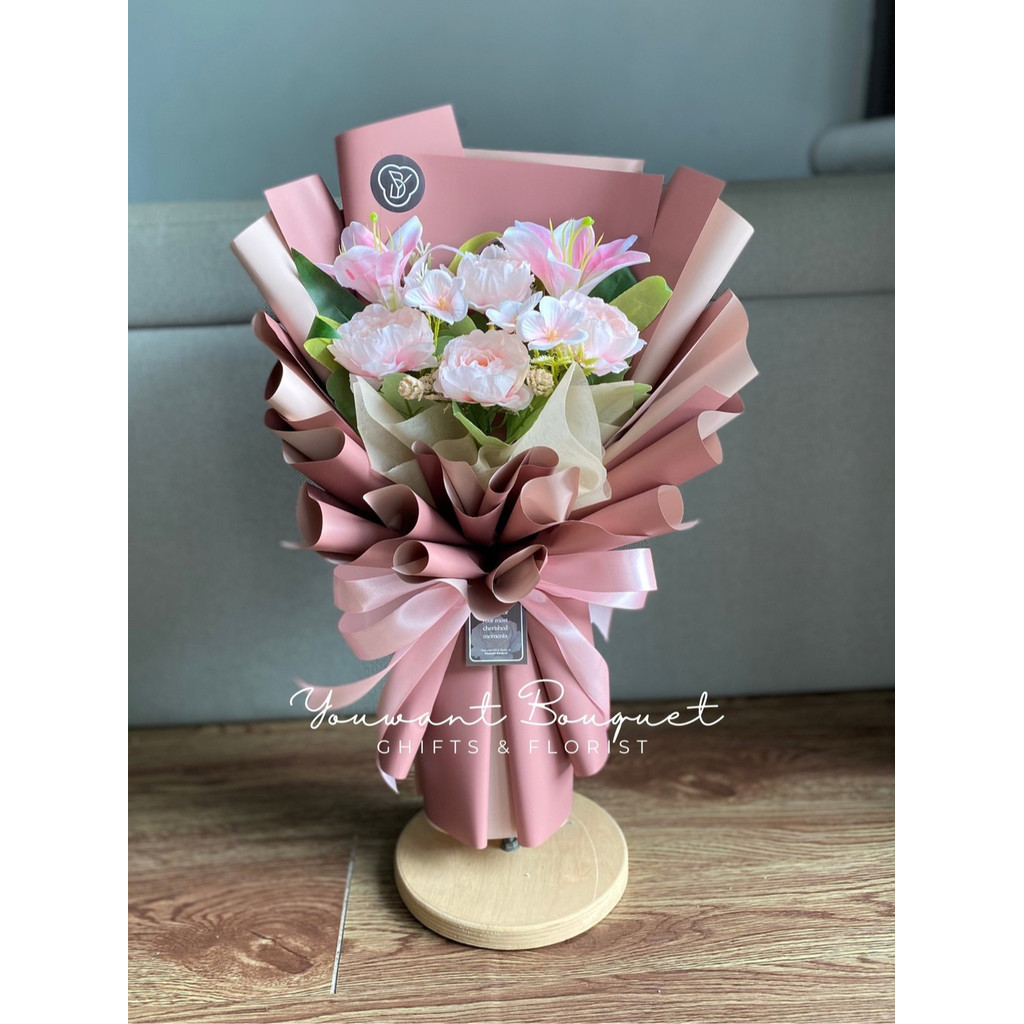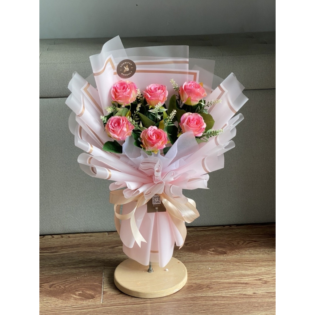 (FLASH SALE) Buket Bunga Premium Mix Artificial 6 Tangkai Free Ucapan Dan Paking / Buket Ucapan
