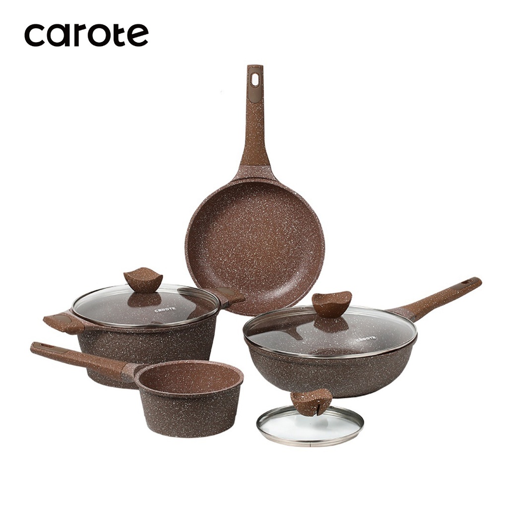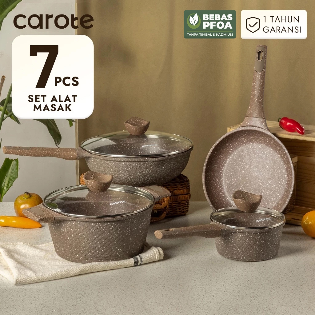 TERLARIS CAROTE Set Peralatan Masak Dapur 7 PCS Lapisan Granit Anti Lengket Cocok Untuk Semua Jenis Kompor Panci Susu Pa