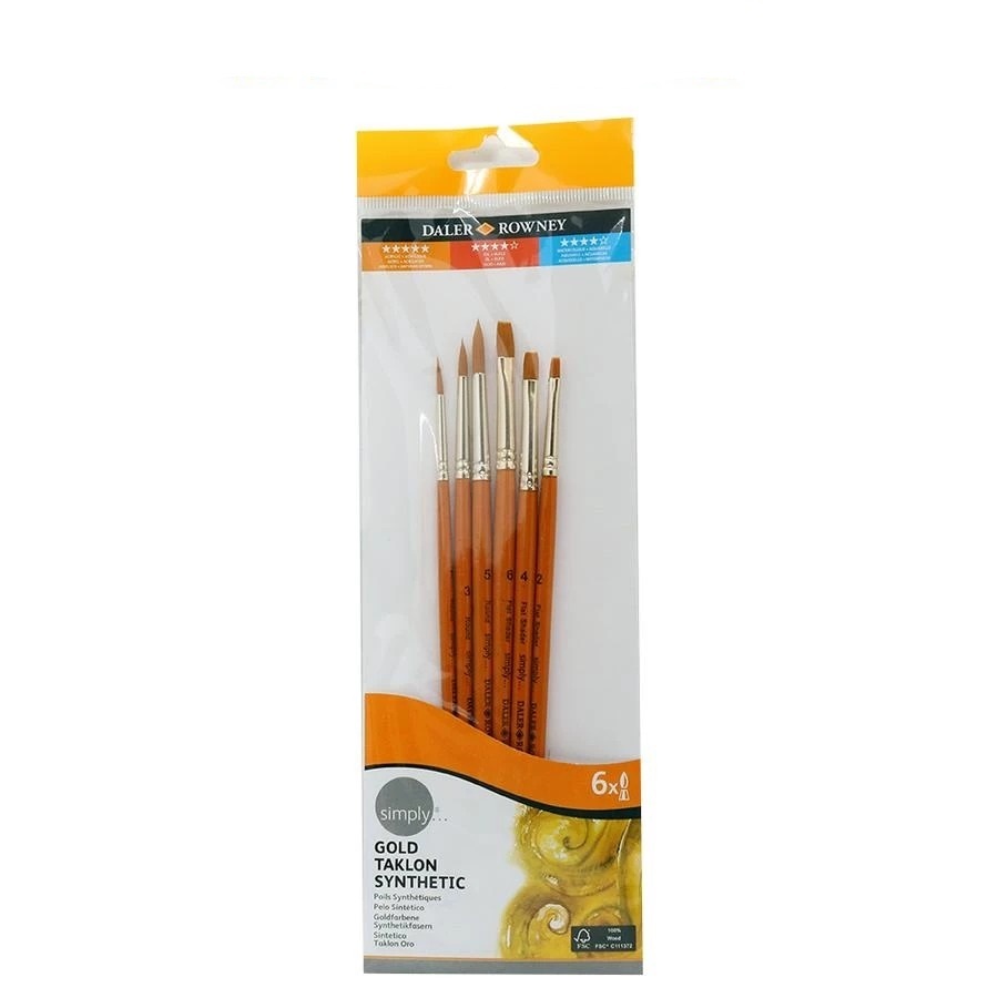 Daler Rowney Simply Kuas Lukis Sintetis Gold Taklon - 6 Pcs 216920601
