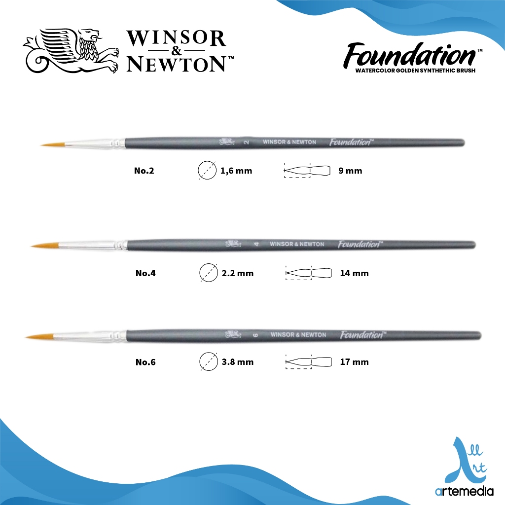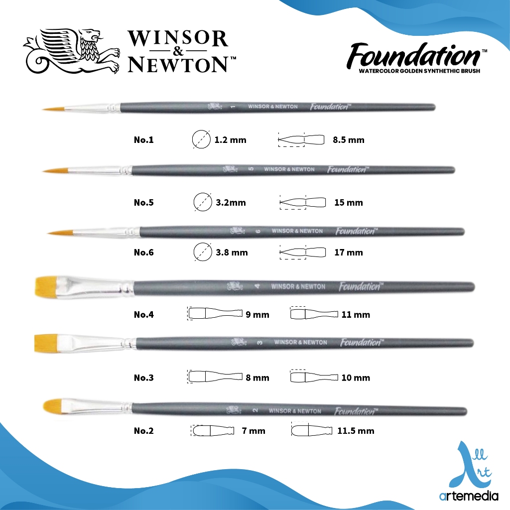 Winsor & Newton Foundation Watercolor Brush Set Golden Synthetic Kuas Lukis