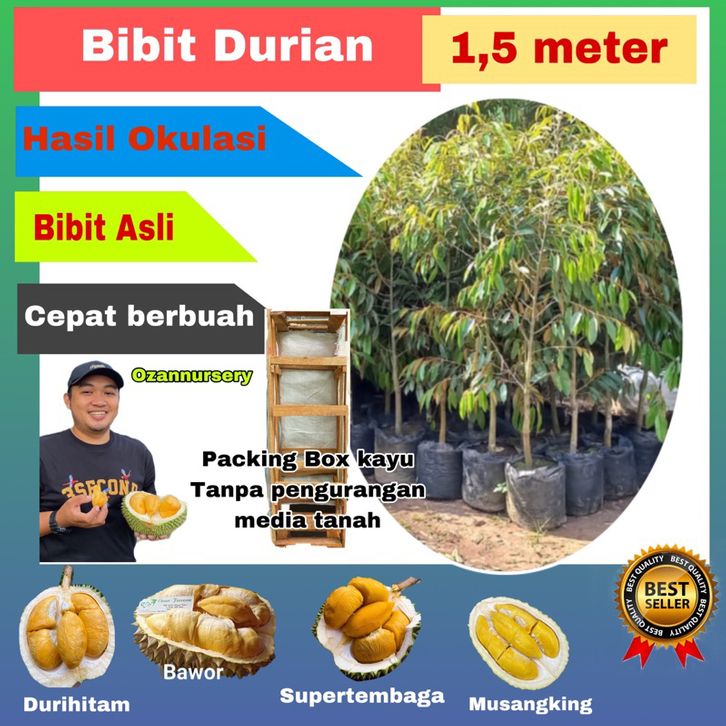 Bibit Durian ukuran 1,5meter jenis musangking , bawor, durihitam, Monthong, Supertembaga, Namlung