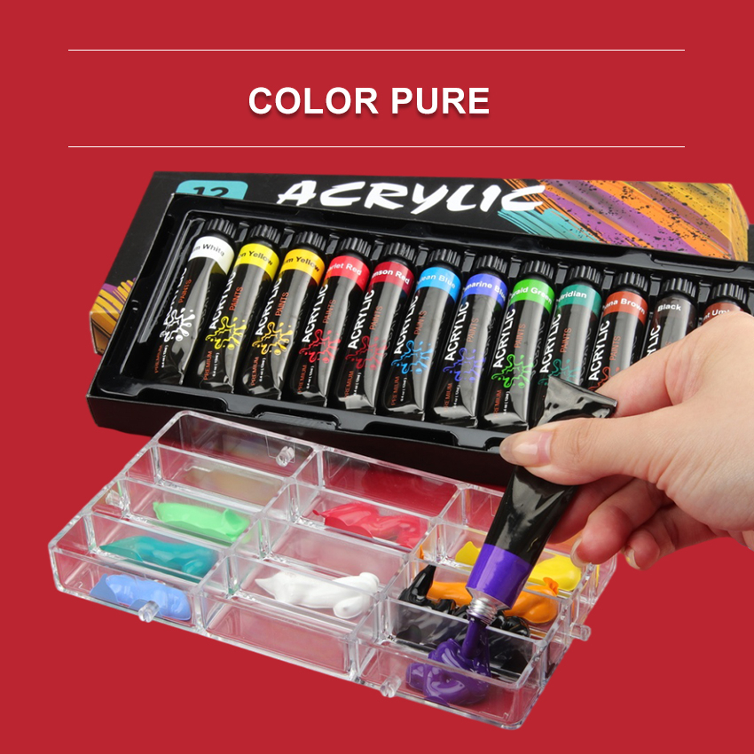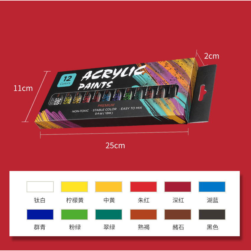 SeamiArt 12 24color Acrylic Paint Set 12ml Tube Acylic with 10pcs Painting Brush Cat akrilik 12 24 Warna