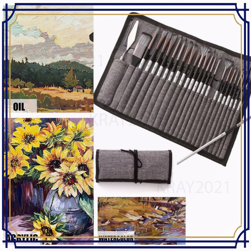 Set Kuas Lukis Cat Air Minyak Nylon Paint Brush 24 PCS -AT278