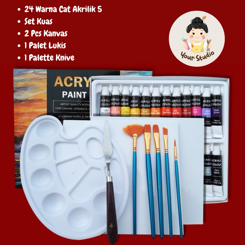 KIT Cat Akrilik SET 24 Warna (ISI 33 PCS) FREE KANVAS