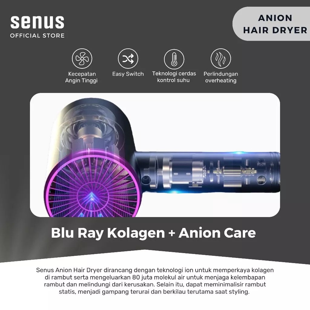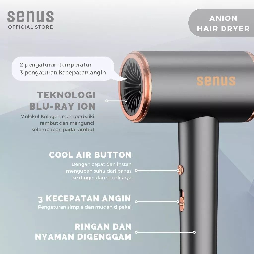 Hair Dryer Senus Pengering Rambut Anion Salon Haircare Hot Wind Ionik 850W Original [GRATIS ONGKIR]