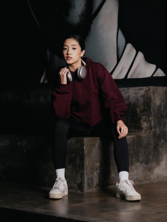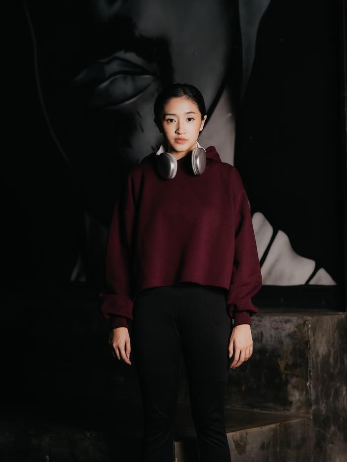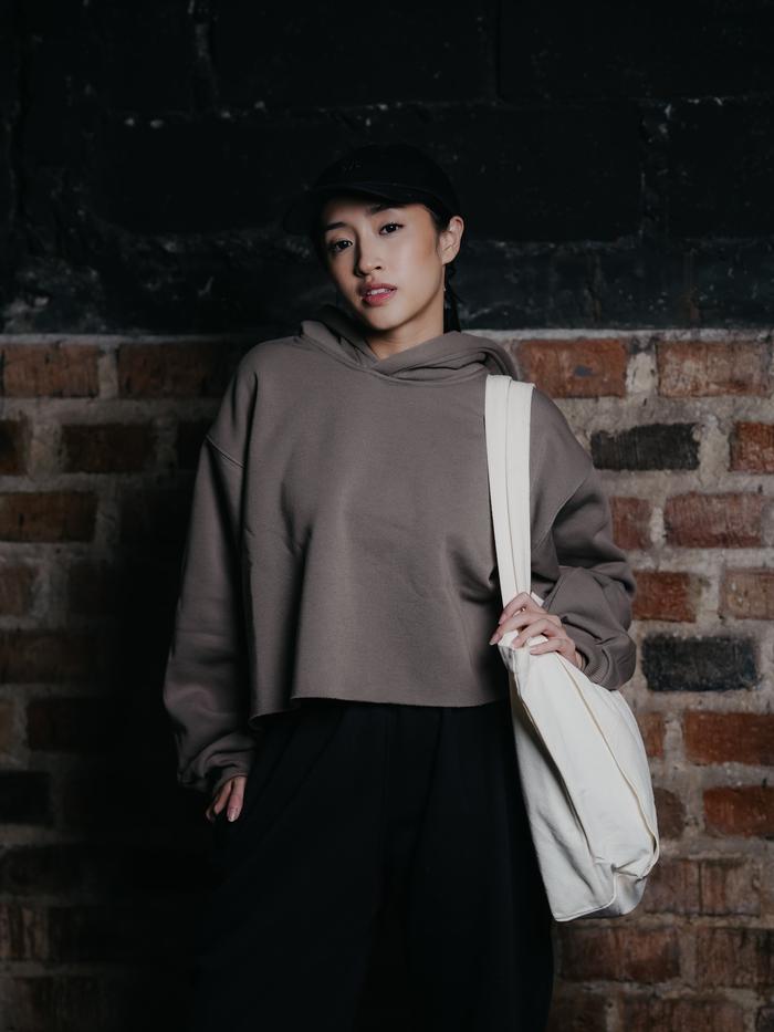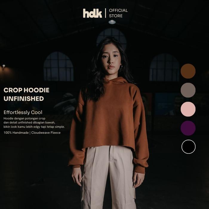HOODIEKU CROP HOODIE UNFINISHED PREMIUM POLOS FLEECE TEBAL WANITA - BLACK