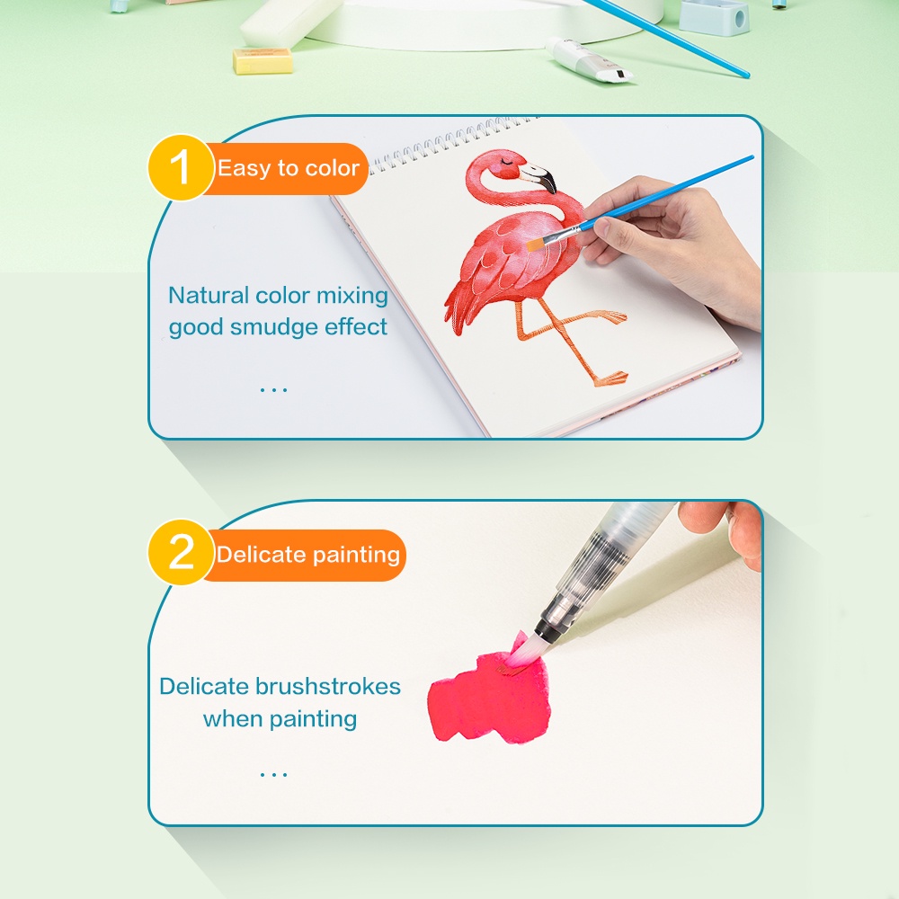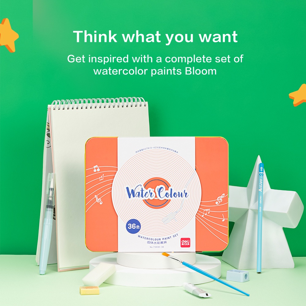 Deli Solid Watercolor Paint / Set Cat Air Padat Warna Terang Dengan Kuas Air Otomatis 73936-X