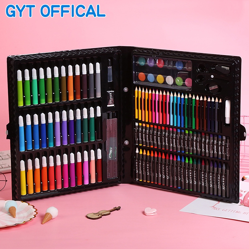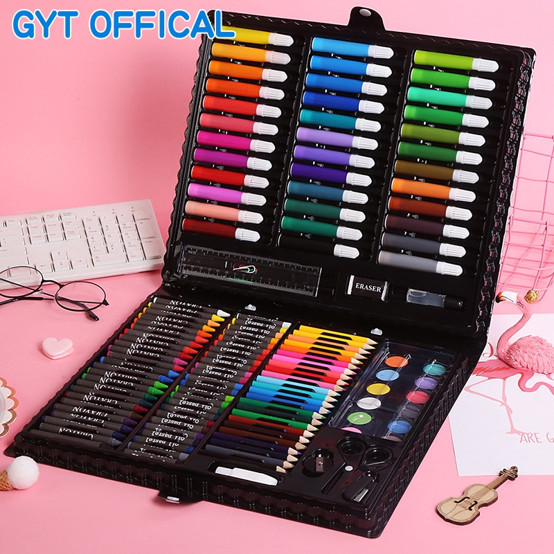 GYT Set pena cat 150 anak kuas cat air krayon lilin tongkat alat lukis set perlengkapan sekolah tk lukis