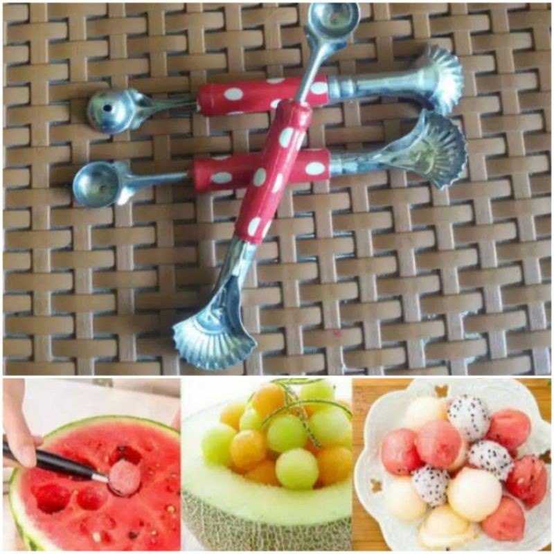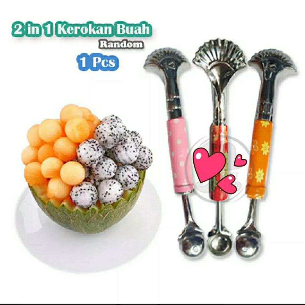 (FLASH SALE) Hello - 1 PC [KBK] 2 IN 1 Cetakan Cocktail Es Buah Bulat Kerokan Salad Koktail Kelapa Blewah Melon TERMURAH