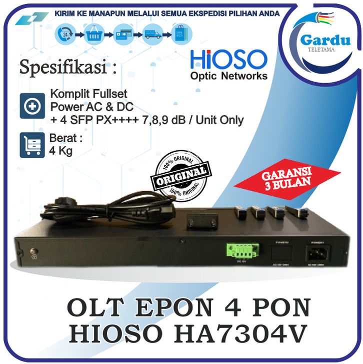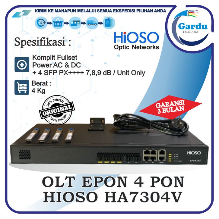 OLT EPON 4 PON HIOSO HA7304V Power AC/DC + 4 SFP 7 Db, 8 Db, 9 Db