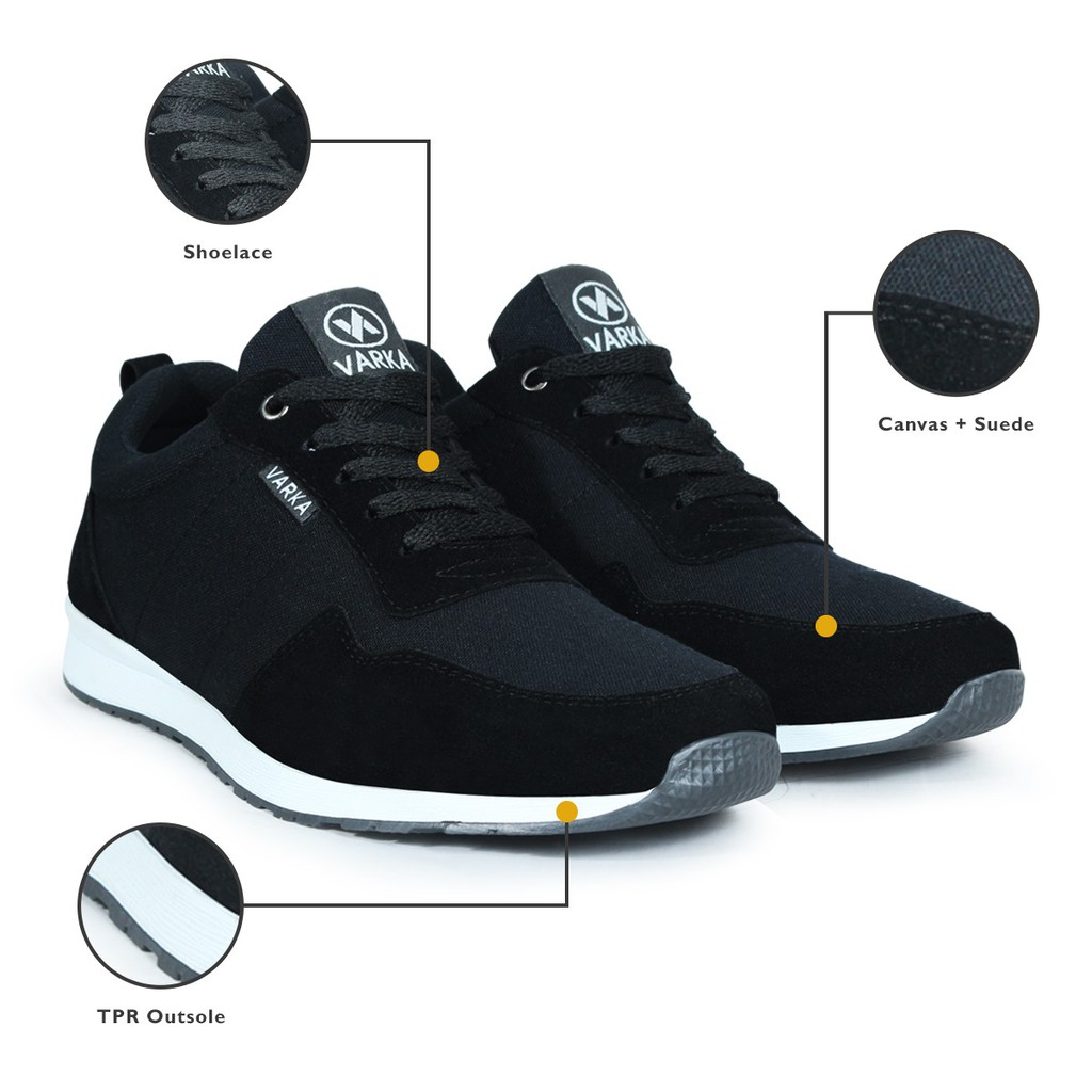 Sepatu Sneakers Pria V 4047 Brand Varka Sepatu Kets Pria Kuliah Sekolah Olahraga Hitam Trendi Berkualitas