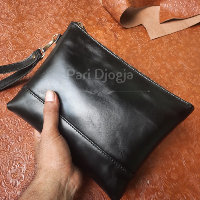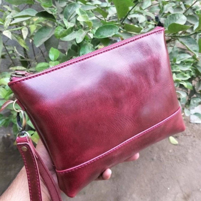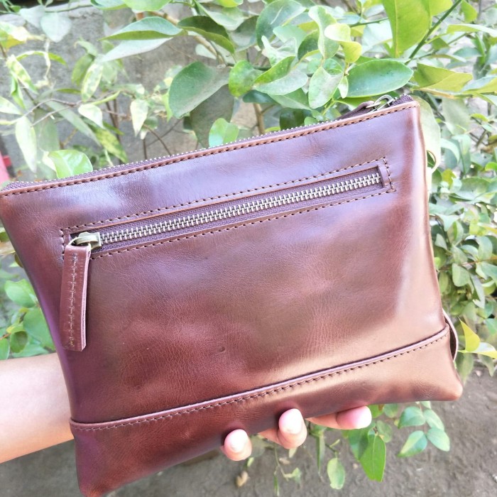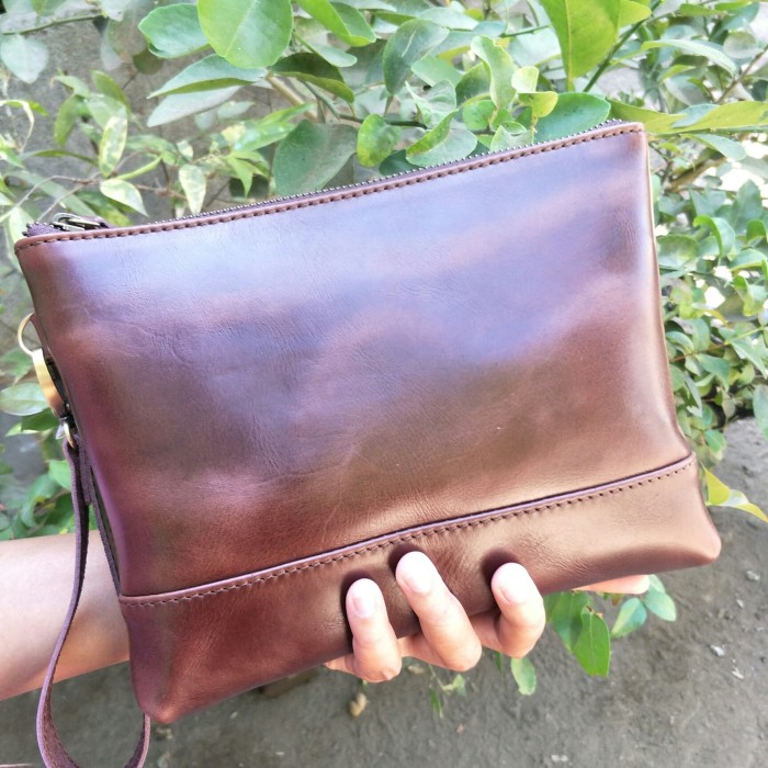 DP 0 HANDBAGS CLUTCH BAG POUCH KULIT PULL UP DARK BROWN HAVANA
