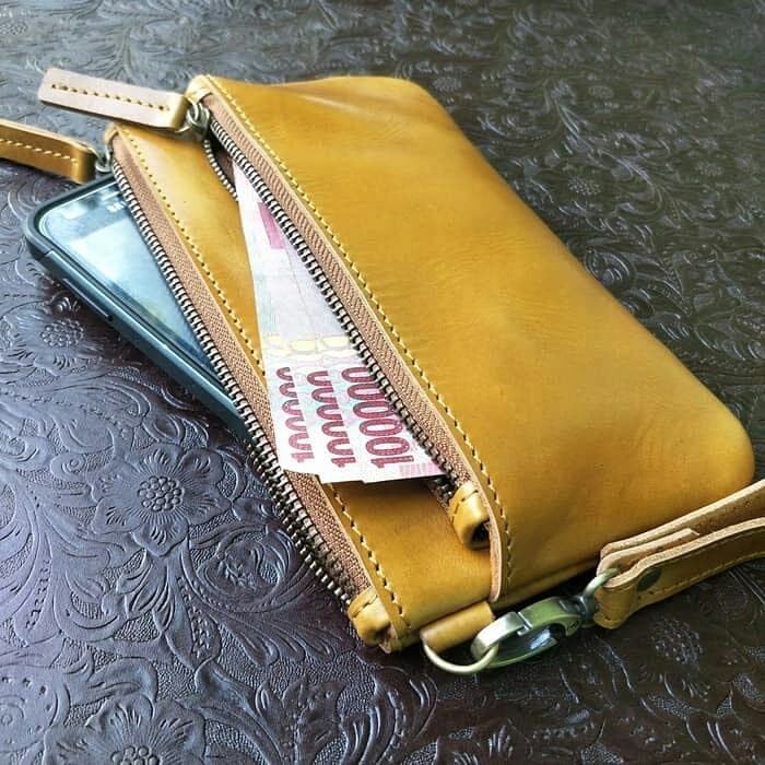DP 0 DOMPET HP POUCH HP KULIT SAPI ASLI HITAM