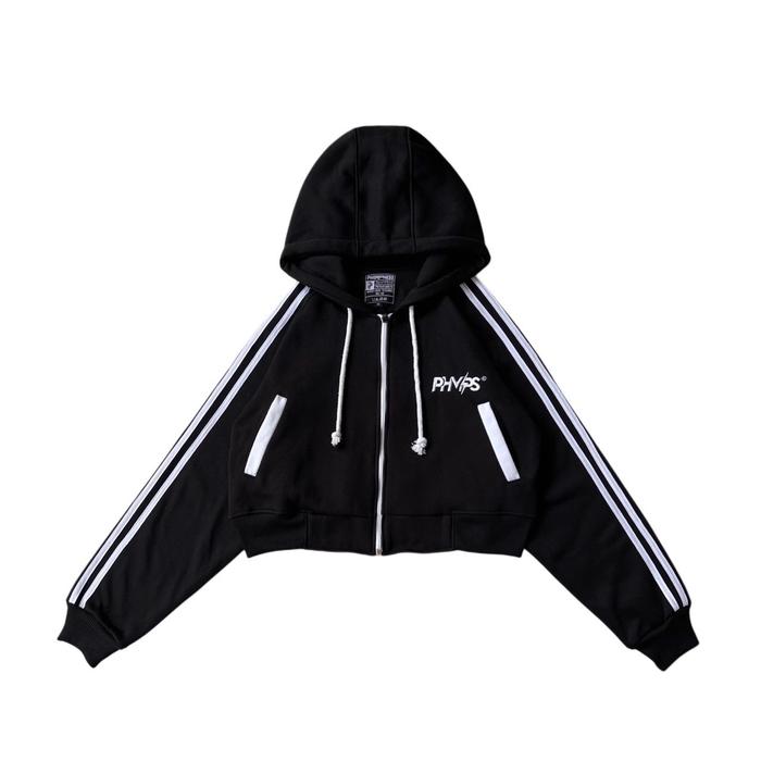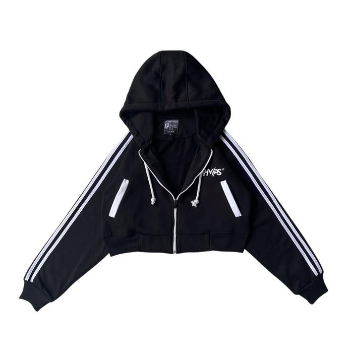 FORTYEIGHT SWEATER HOODIE ZIPPER CROP WANITA OVERSIZE BASIC - HD CROP HITAM, M