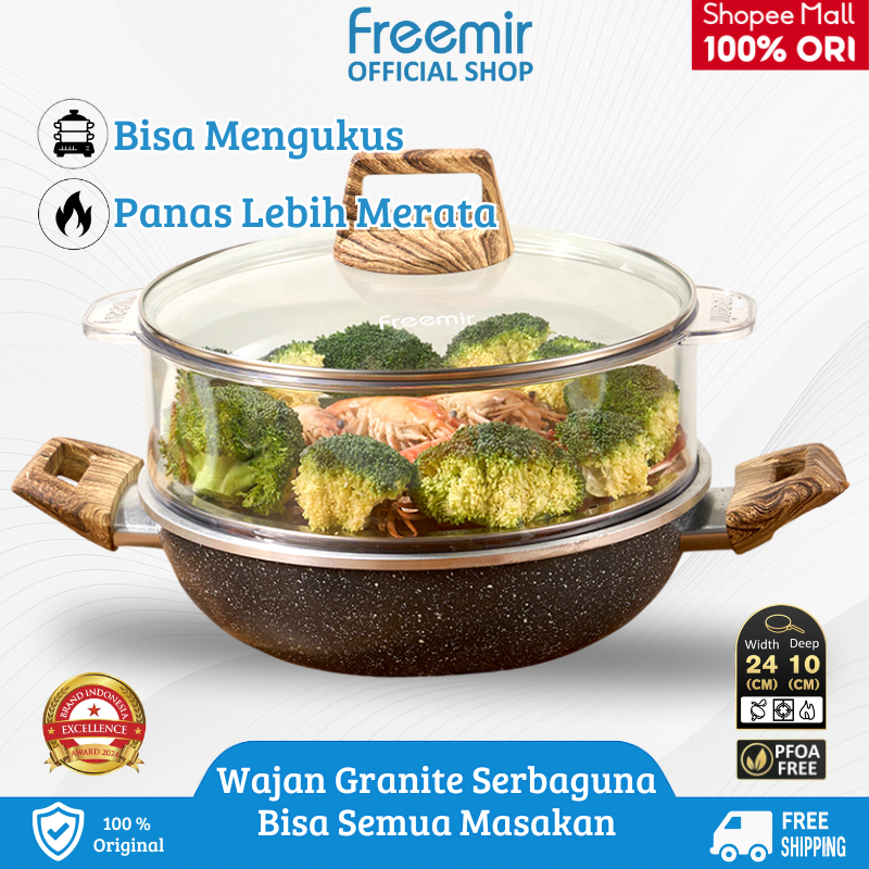 Wajan Panci Kukus Black Series 24cm Kedalaman 10cm Granite Panci Anti Lengket Panci Multifungsi Panci Wajan Goreng
