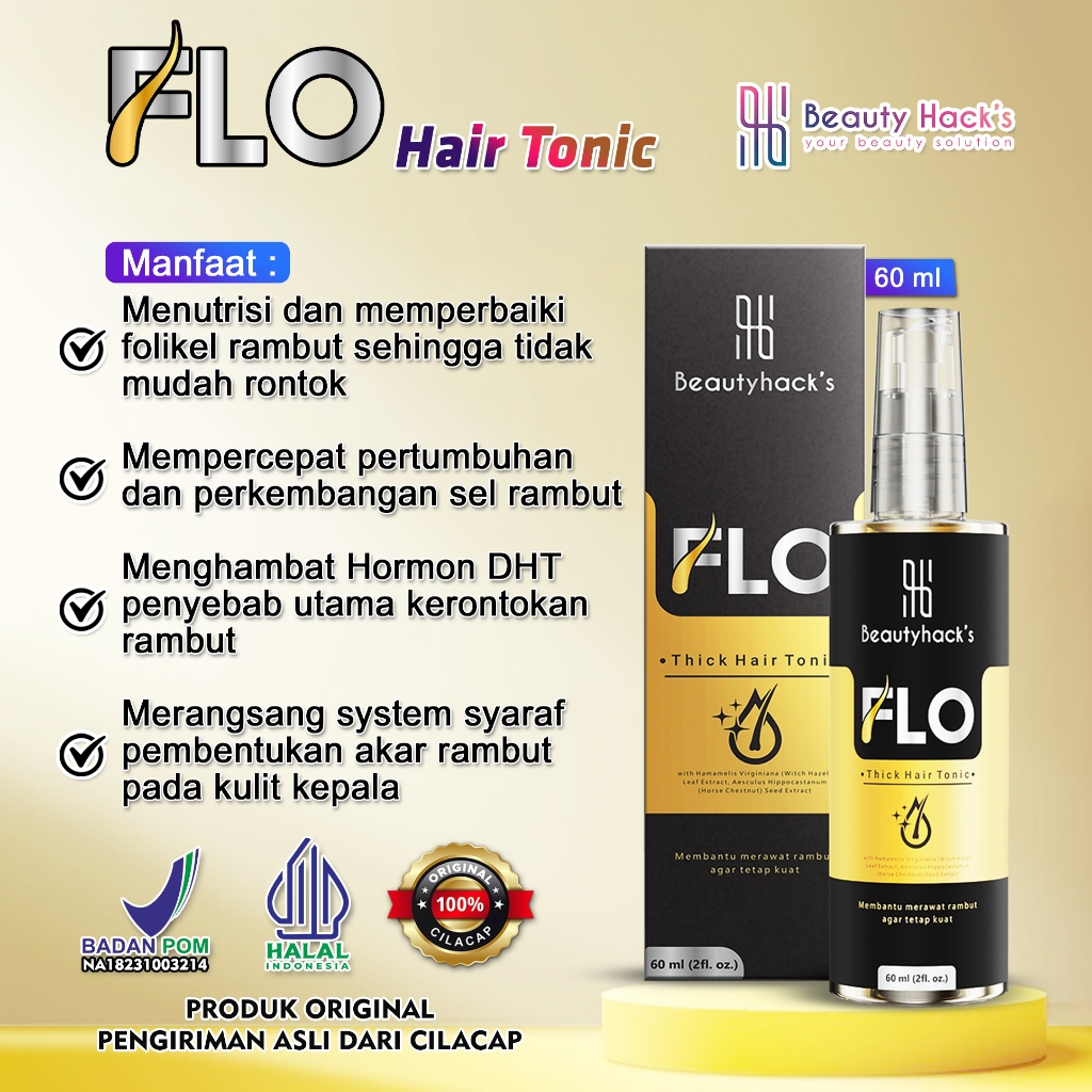 FLO Hair Tonic Penumbuh Rambut Kebotakan Dini Original Beautyhacks Resmi BPOM Serum Vitamin Rambut