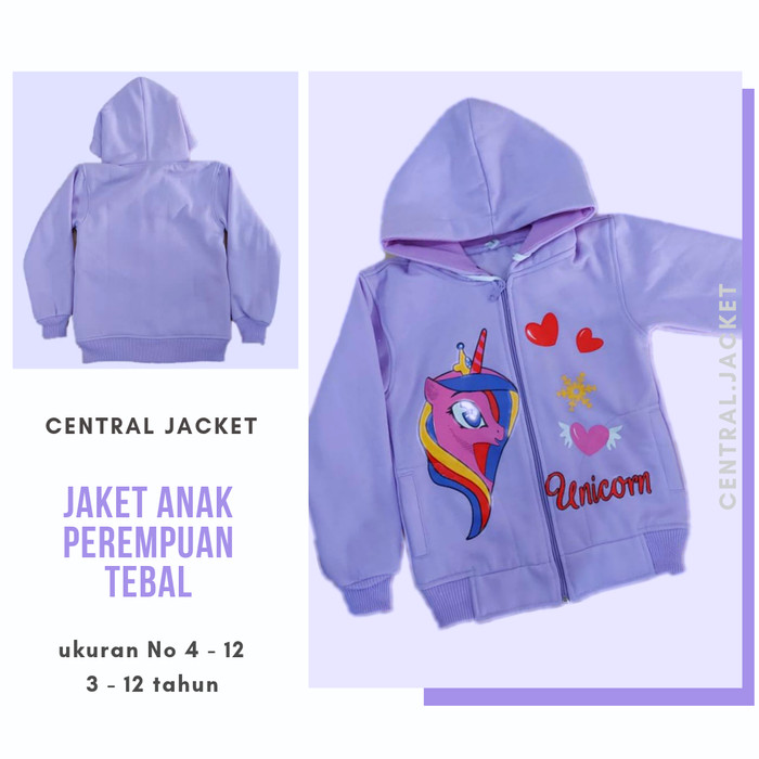 PROMO TERBATAS JAKET HOODIE ANAK PEREMPUAN TK SD SWEATER UNICORN ANAK CEWEK TEBAL UNGU 23 TAHUN