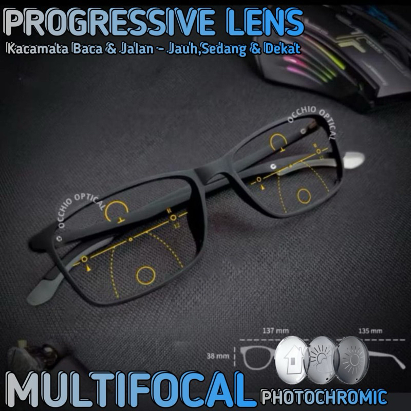 (FLASH SALE)Kacamata Progresif Pria/Wanita | Kacamata Baca Plus Jalan | Frame Kacamata Progresif Blueray/Photochromic