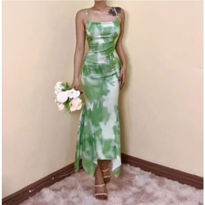 EMITA BLOOM Summer Dress Bali Kekinian Dress Hijau Sage Korea Flowy Dress Pantai Wanita Hijab Press Body Panjang Korean