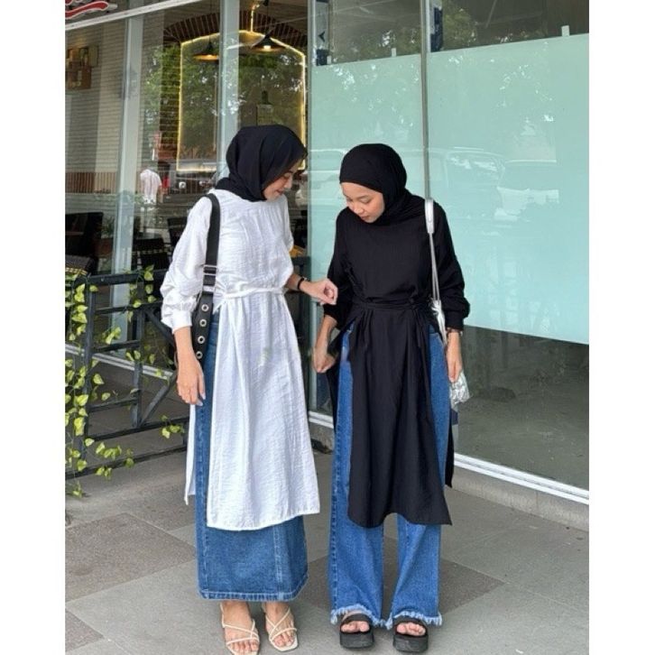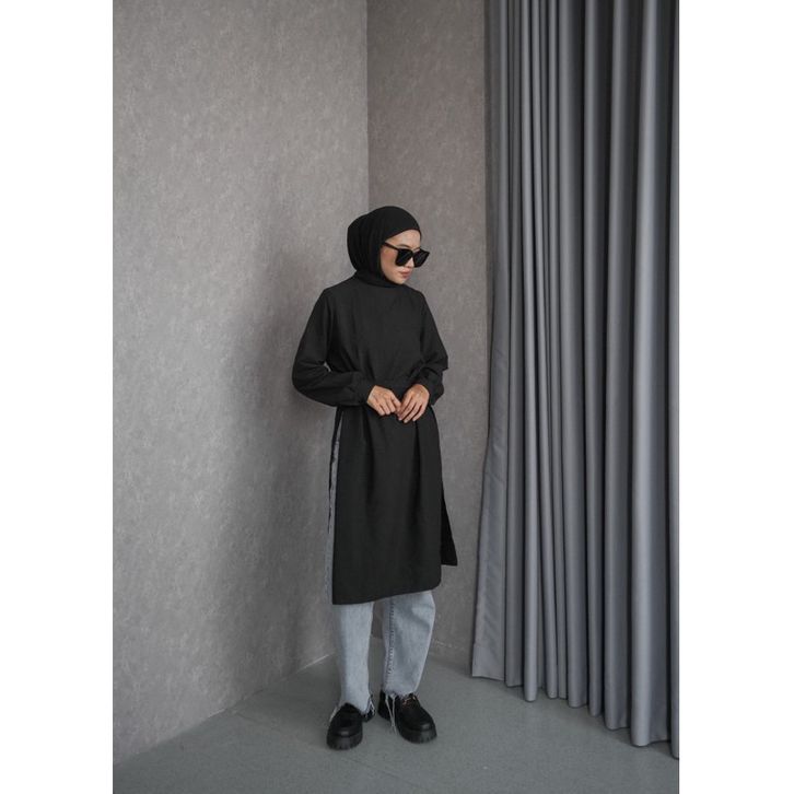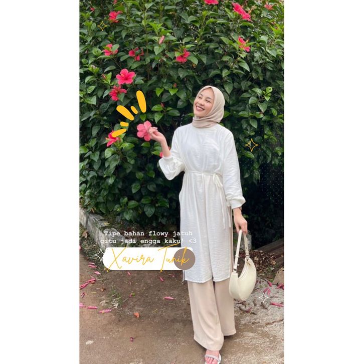 EKSKLUSIF Xavira Tunik Kemeja Oversize Linen Wanita Polo Shirt - Atasan Wanita Lengan Panjang Oversize - Baju