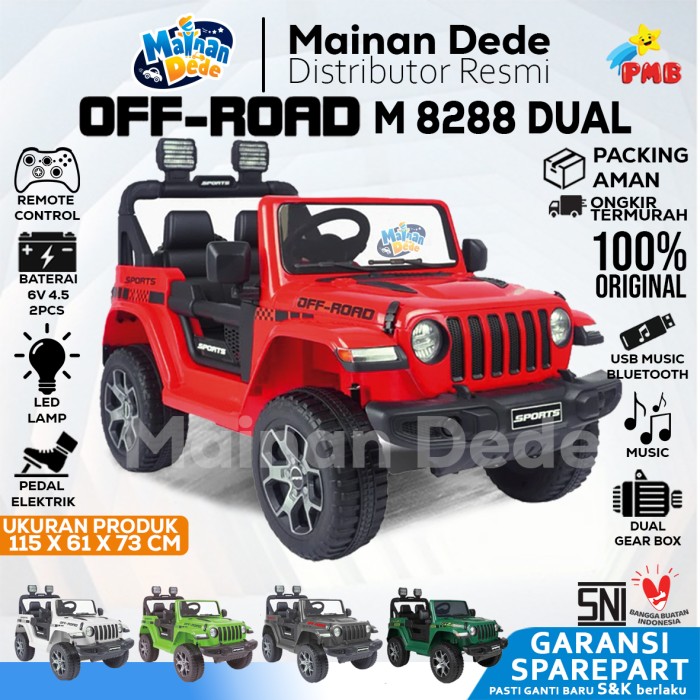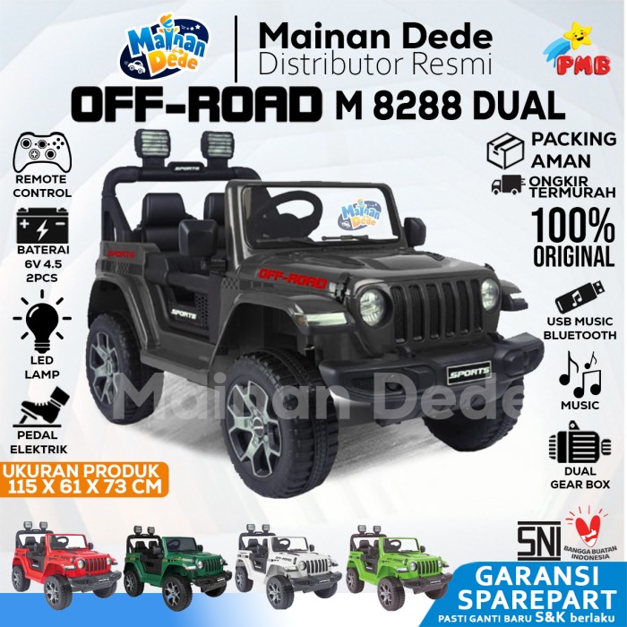 DP 0 MAINAN MOBIL AKI ANAK JEEP OFF ROAD PMB 8288 M8288 REMOTE ARMY DUAL MOTOR DUS BAW