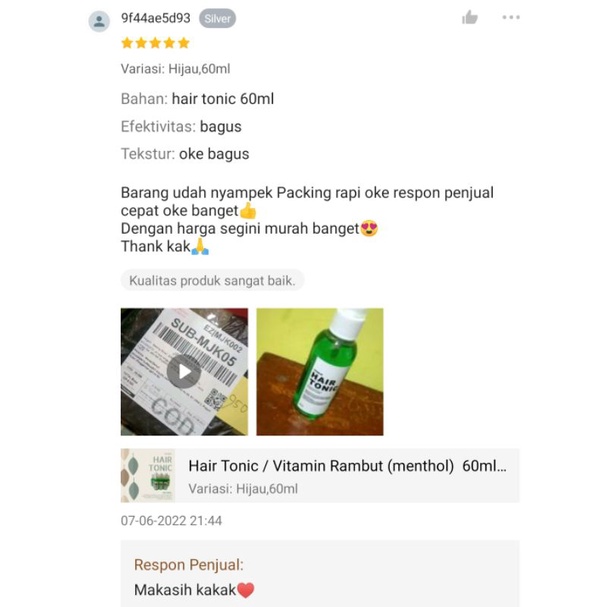 VITAMIN RAMBUT / HAIR TONIC PREMIUM EXTRA MENTHOL 60ML
