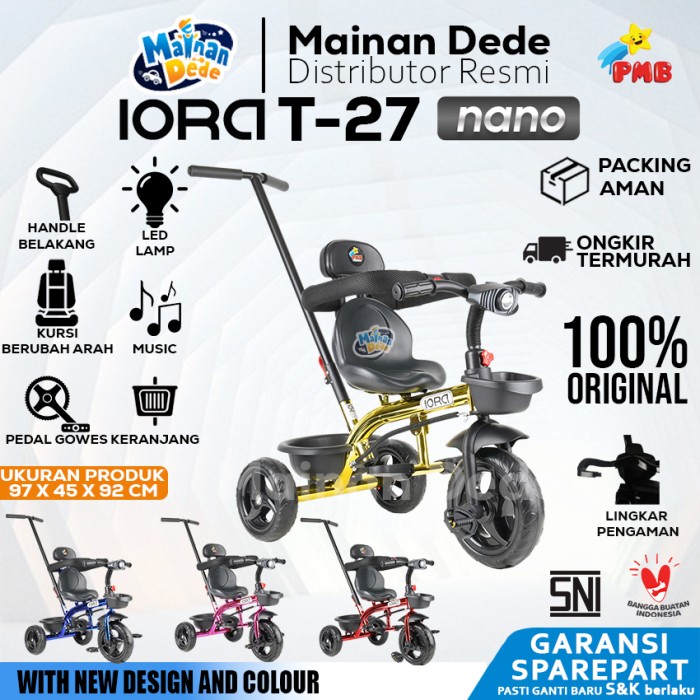 DP 0 SEPEDA RODA 3 TIGA PMB IORA T27 MUSIK TRICYCLE ANAK BIRU DUS BAWAAN
