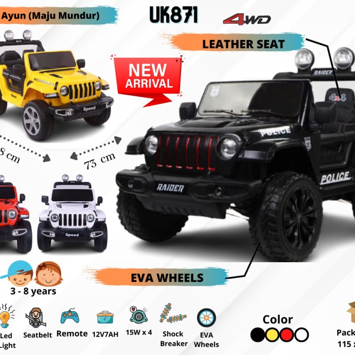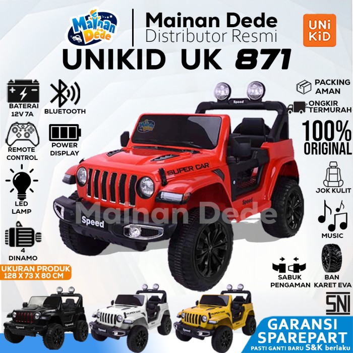 DP 0 MAINAN MOBIL AKI ANAK JEEP RUBICON UNIKID UK 871 BAN KARET JOK KULIT KUNING DUS B