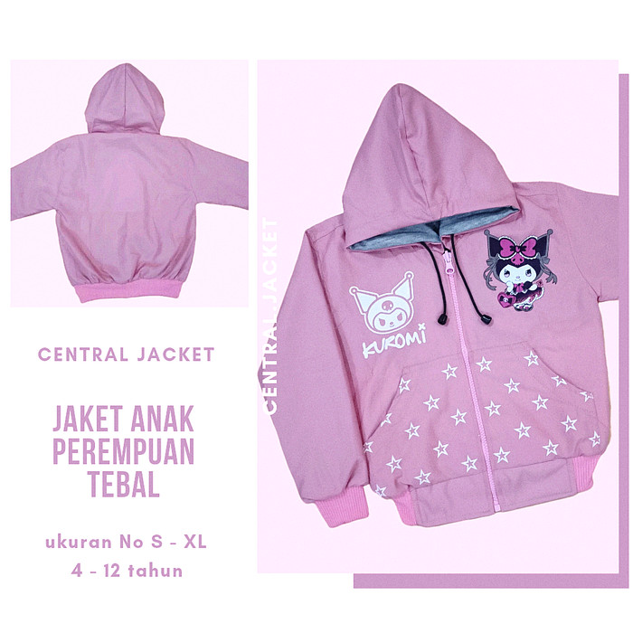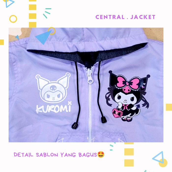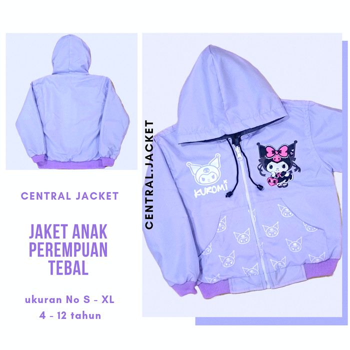 PROMO TERBATAS JAKET ANAK KUROMI JAKET ANAK PARASUT TEBAL WATERPROOF FASHION HOODIE LILAC S