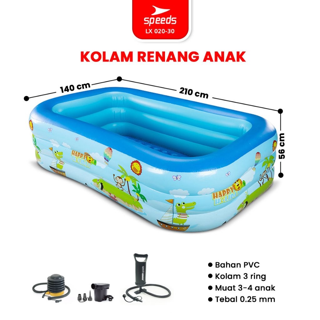 Kolam Renang Anak SPEEDS 210x140x56cm 3 Ring Layer Motif Kolam Renang Bayi Portable Bahan Kuat Inflatable Swimming Pool