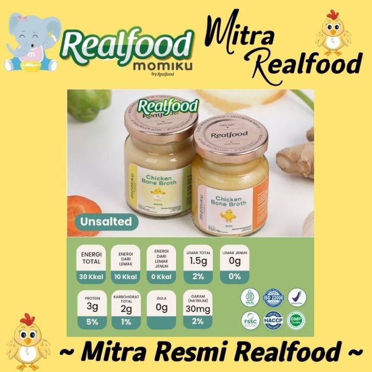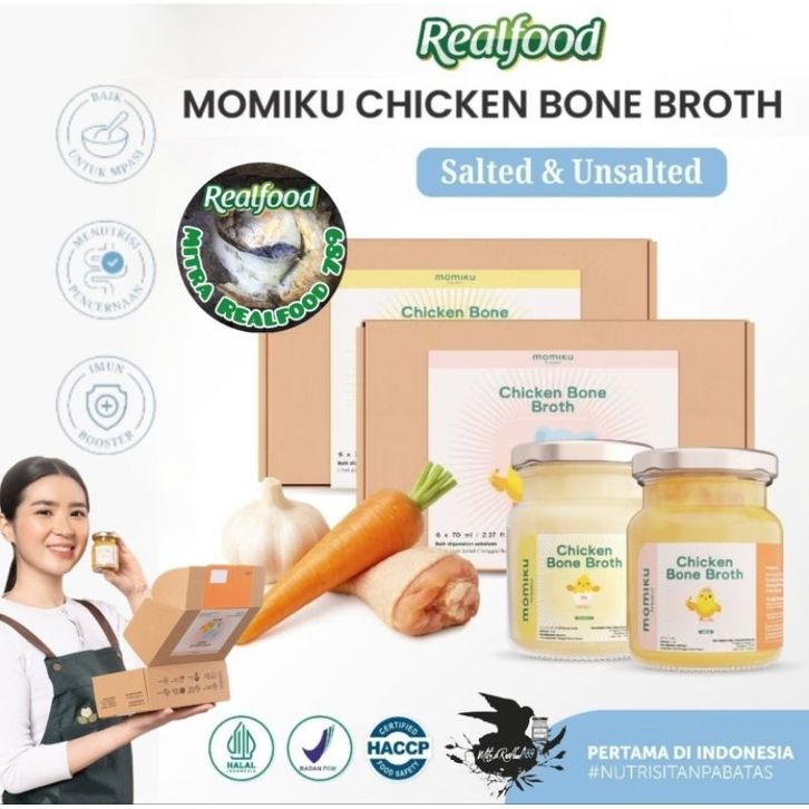 Realfood Momiku Chicken Bone Broth Trial 6 Jar & P.12 Jar Mpasi Kaldu Tulang Ayam Bersertifikat Bpom Halal