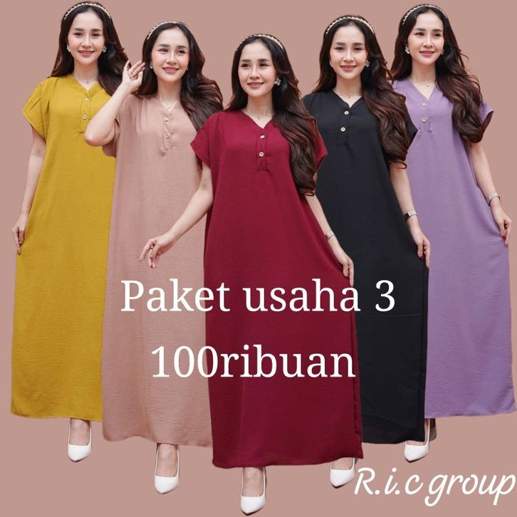 TERBARU Daster busui cringkle jumbo PAKET 3 pcs longdress lengan pendek kringkle Airflow premium LD110-120 unork