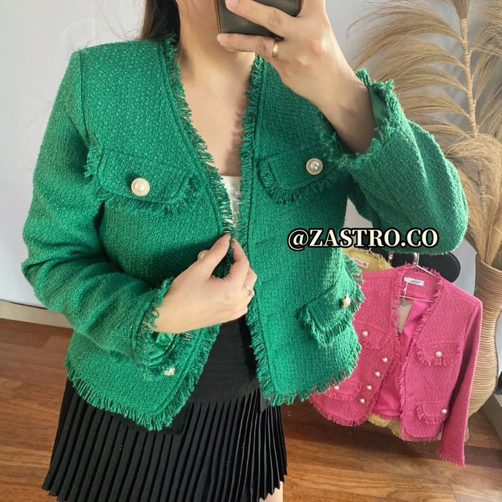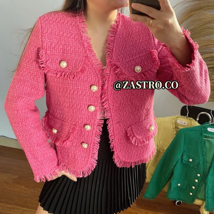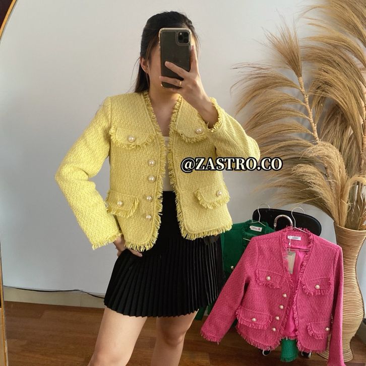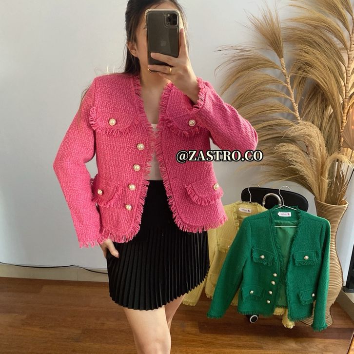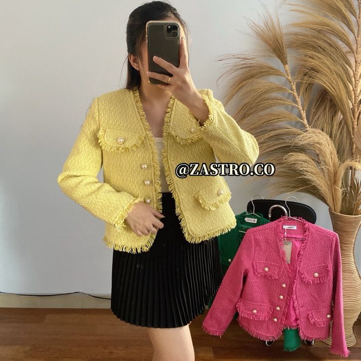 EKSKLUSIF BT-3303 Vintage Blazer Tweed V Neck Pear Buttoms // Luxury Blazer Tweed Premium osebmn