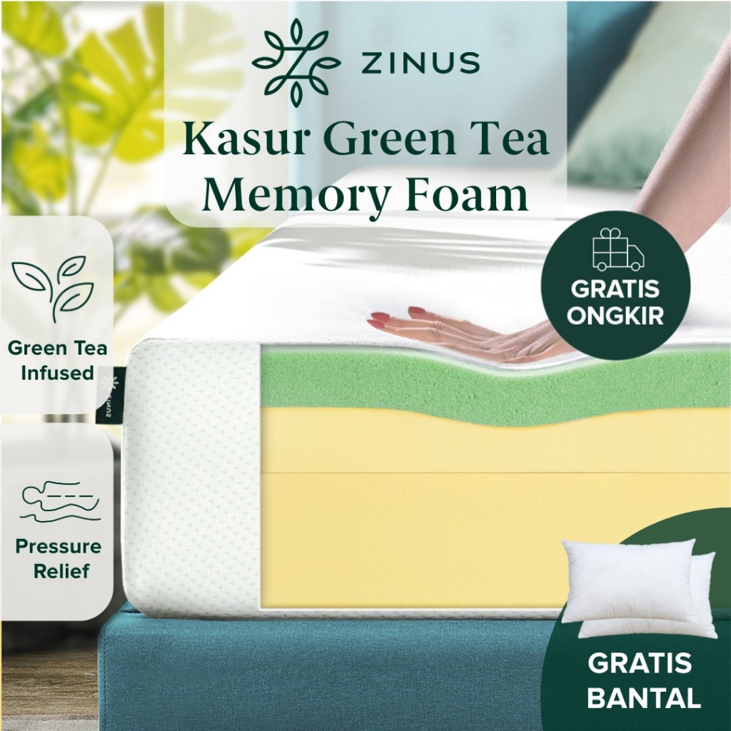 Kasur Busa Zinus Green Tea Memory Foam Backpain Relief Mattress In a Box Terlaris Terbaru Gratis Bantal Garansi Resmi