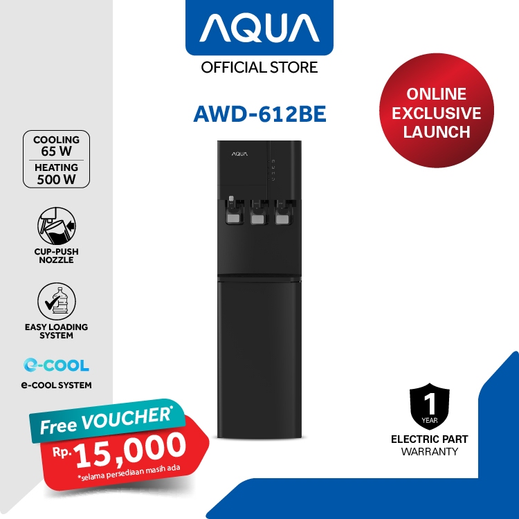 [TANPA-DP-] AQUA AWD-612BE WATER DISPENSER 3 FITUR PANAS DINGIN ES BOTTOM LOADING DISPENSER GALON BAWAH