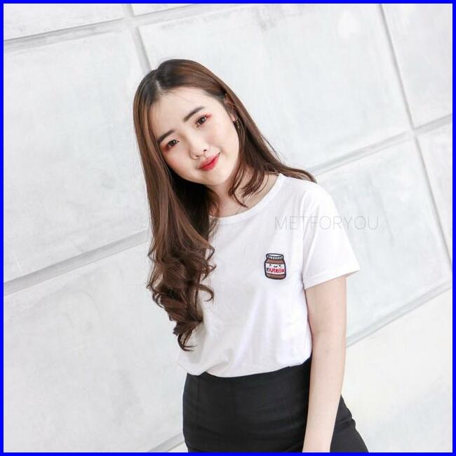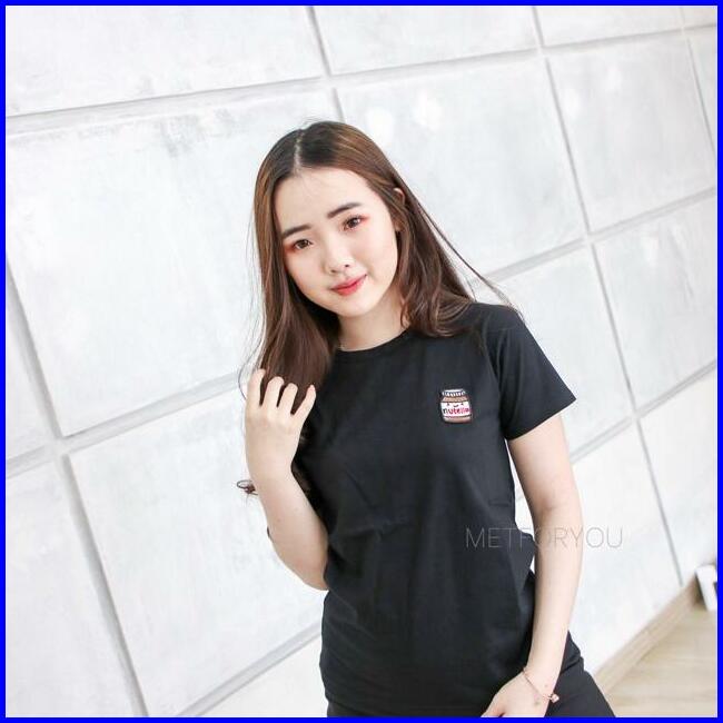 Metforyou Kaos Wanita - Nutella Bordir Baju T Shirt Tumblr Tee Pendek Oversize Unisex Kaos Oversize Wanita Kaos Lengan P