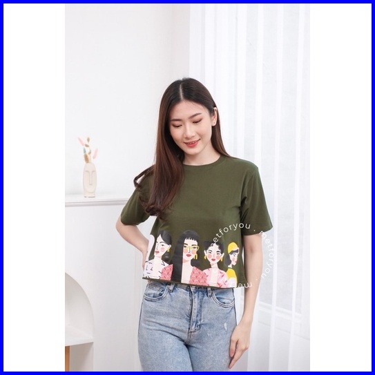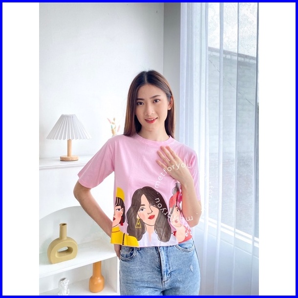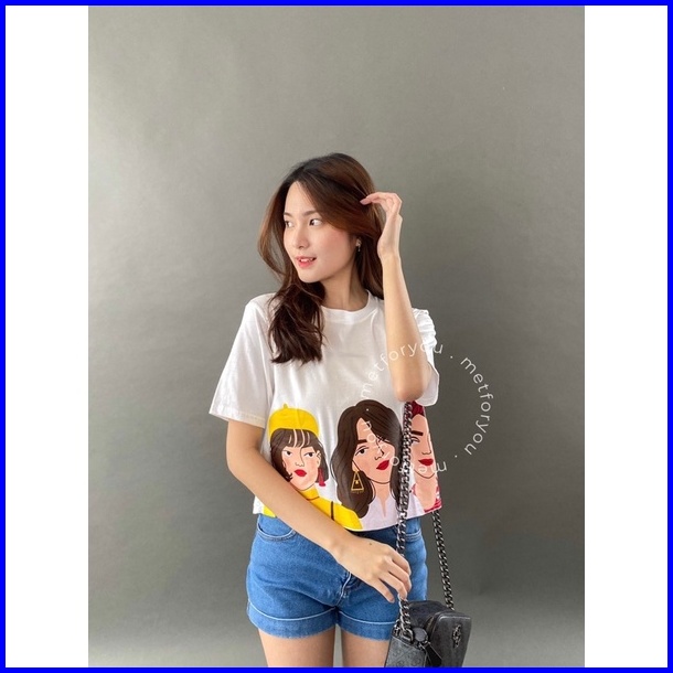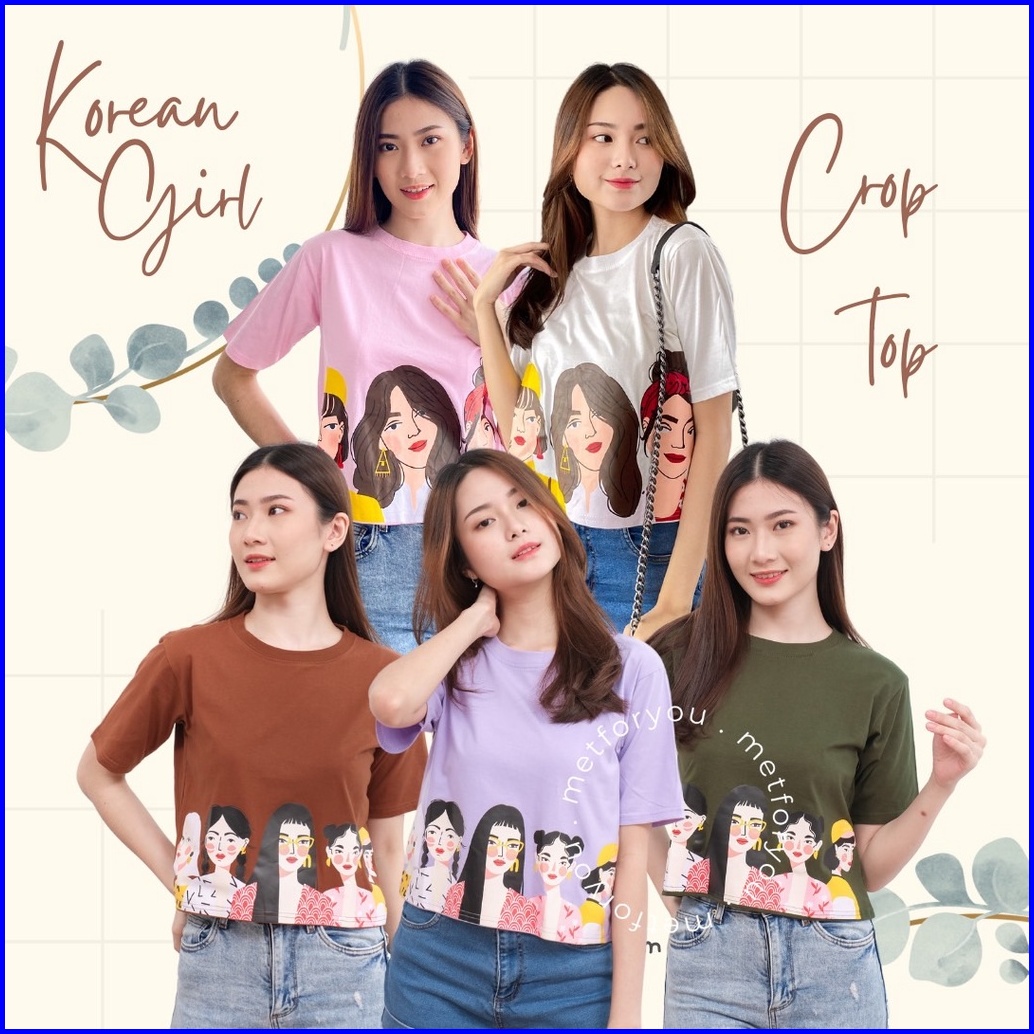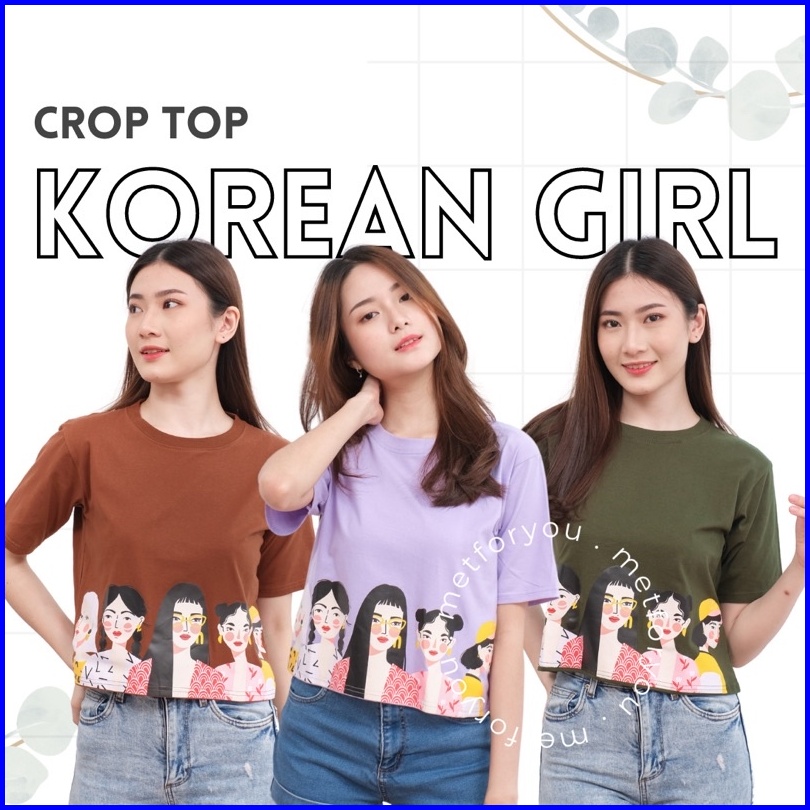 Metforyou Kaos Crop Top Oversize Wanita - Korean Girl Crop Top