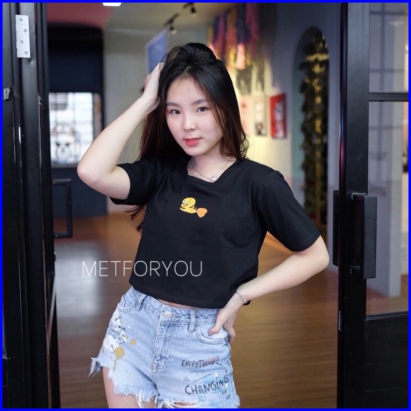 Metforyou Kaos Crop Top Wanita - Twity Crop Tee