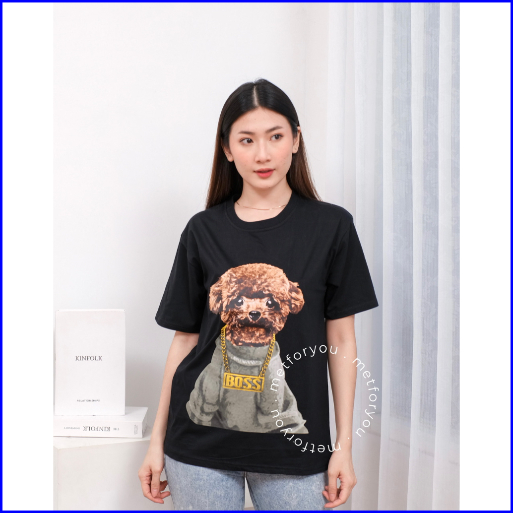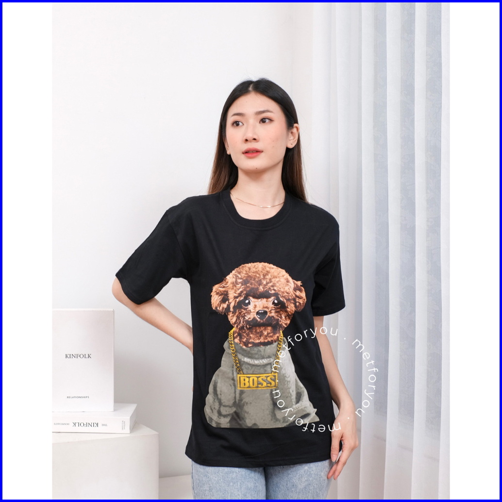 Metforyou Kaos Wanita - Hype Dog Edition Poodle Boss Baju T Shirt Tumblr Tee Pendek Oversize Unisex Kaos Oversize Wanita