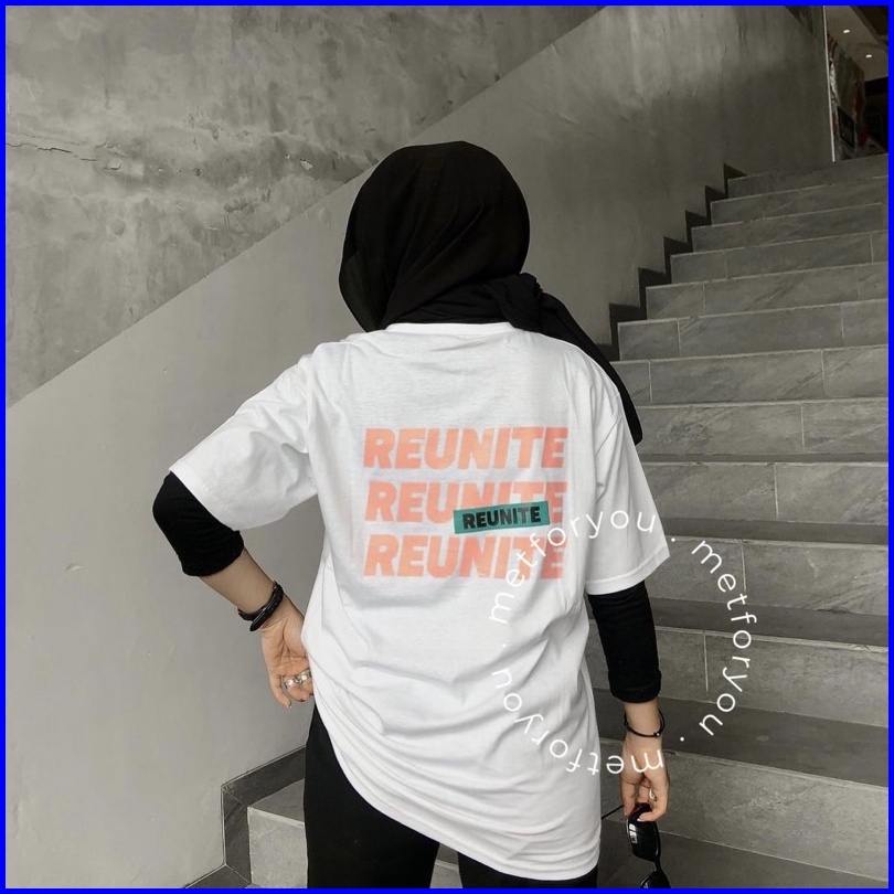 Metforyou Kaos Wanita - Reunite Baju T Shirt Tumblr Tee Pendek Oversize Unisex Kaos Oversize Wanita Kaos Lengan Pendek S