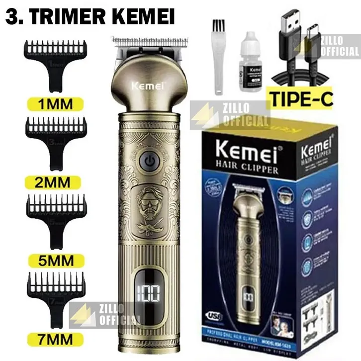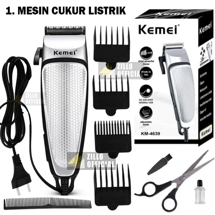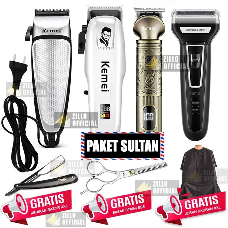 ZILLO Alat Cukur Rambut Set Paket Usaha Pangkas Barbershop Mesin Pencukur KEMEI Original