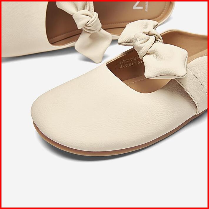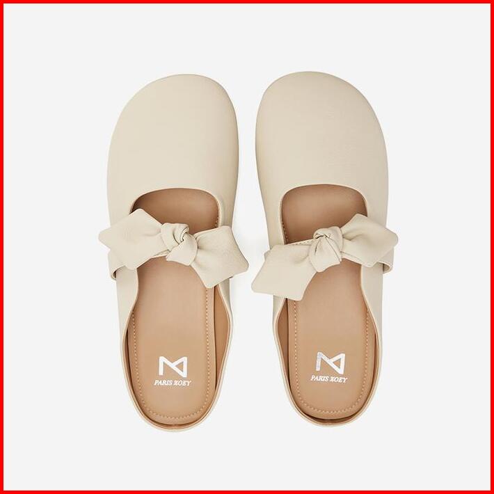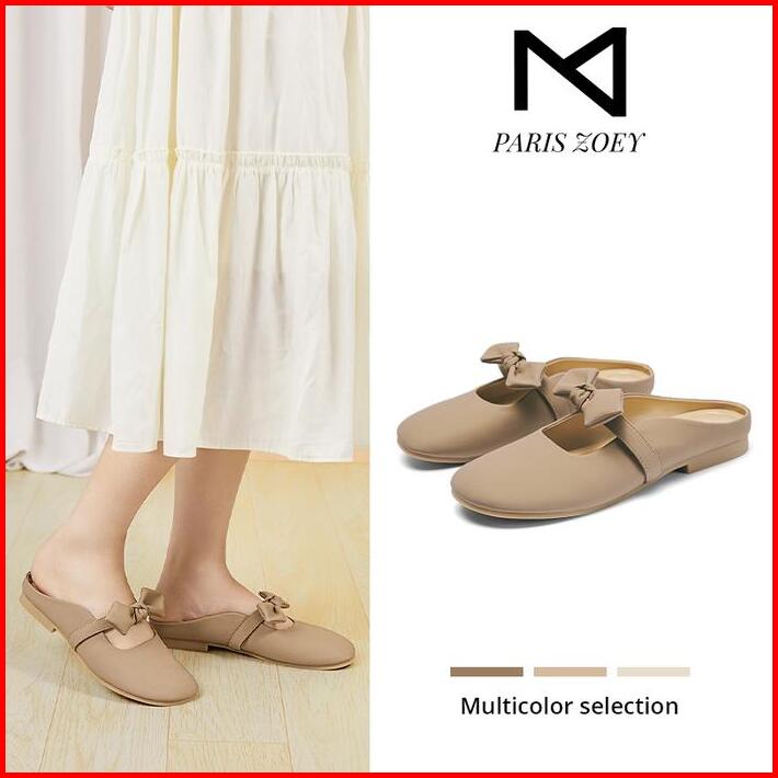 Paris Zoey Zoelle Mules Flatshoes Wanita Coklat Putih Simpel Elegan Pzx2223301 Sepatu Sendal