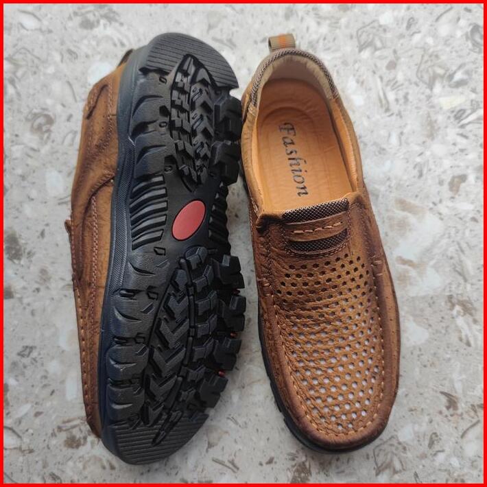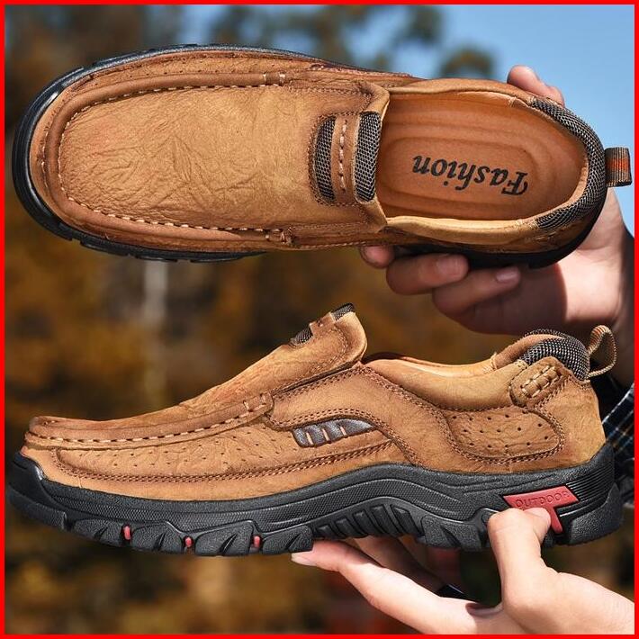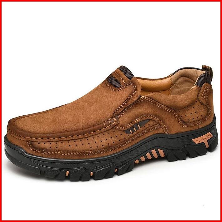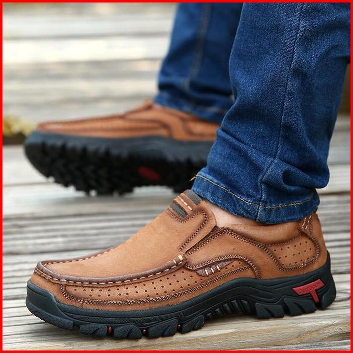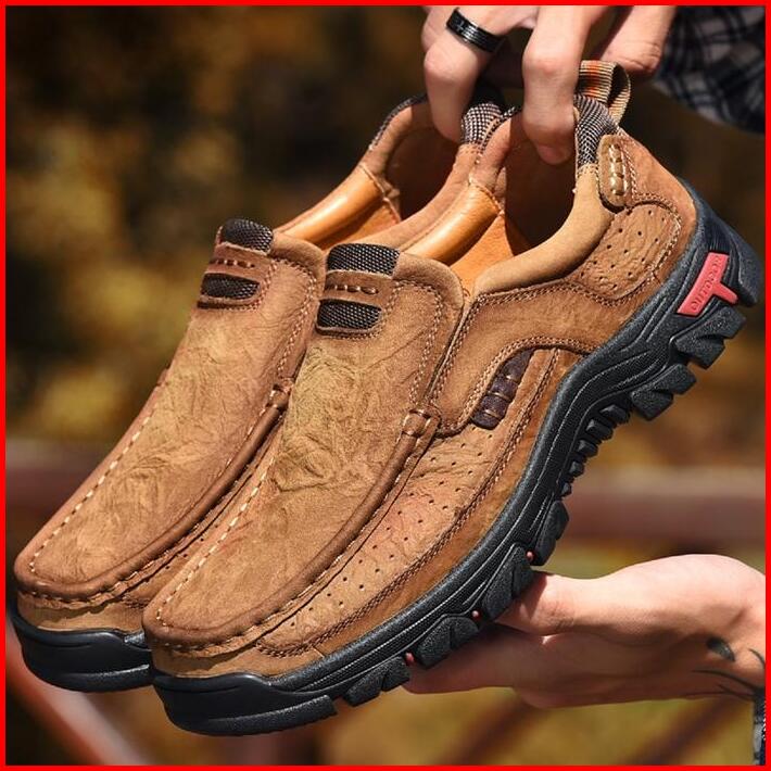 Prelesty 100 Kulit Asli Original Sepatu Olahraga Slip On Gunung Sepatu Hiking Touring Tanpa Tali Casual Trekking Cowok D