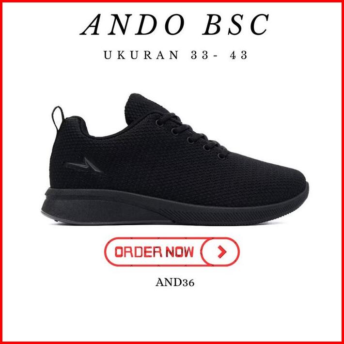 Sepatu Ando Bsc Tali Warna Hitam Untuk Laki-laki Dan Perempuan Ukuran 33-43