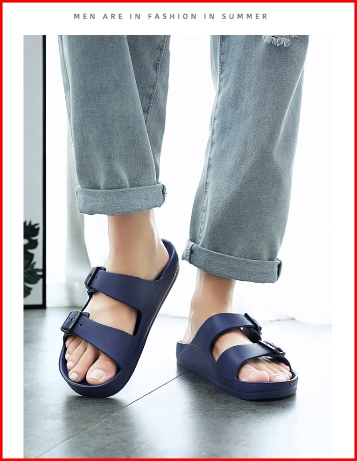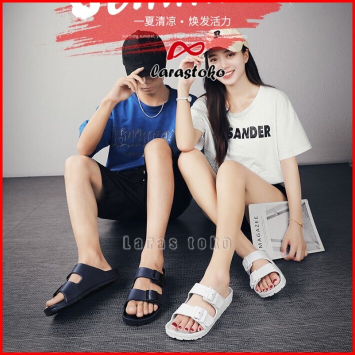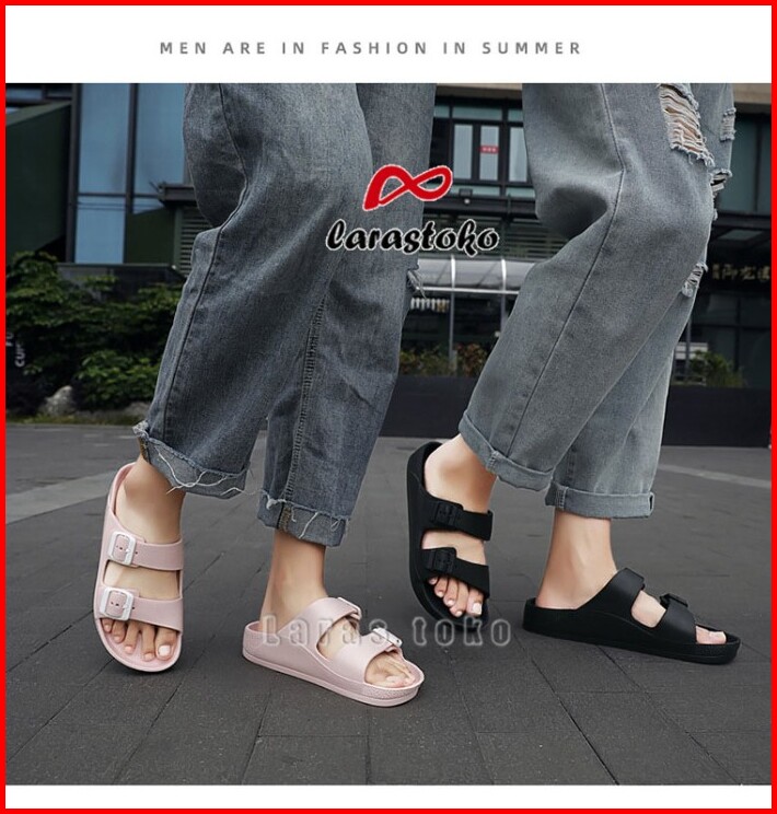 Sandal Karet Cowok Sporty Pria Sendal Pantai Full Slide Bahan Kasual Laki Laki Black Tebal Eva Sedal Samdal Motif Keren