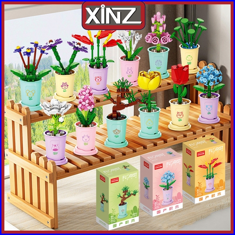 Xinz Pot Tanaman Blok Bangunan Mini Mainan Edukatif Bunga Zodiak Cina Diy Balok Mainan Bricks Buket